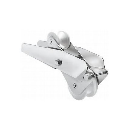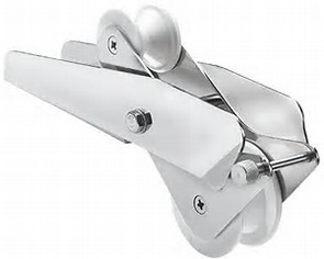 Hinged bow roller suitable for rope and chain anchor lines.
