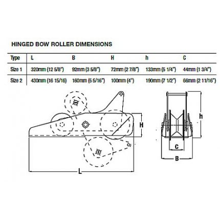 Maxwell Hinged Bow Roller Hinged No 2 - 430mm Long Suits Anchor Line With up to 13mm Chain
