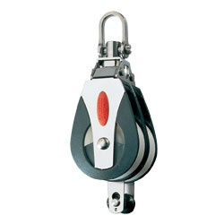 All purpose (AP) blocks are a great all around solution. Self-lubricating Acetal polymer sheaves running on polished stainless steel races perform equally well with dynamic loads and high static loads. For durability and a long service life, these blocks are the right choice for sheets, halyards and control line applications for cruising and racing. Head can be locked at 0° or 90° by removing the shackle and changing the headpost orientation. Becket pin is removeable so line can be spliced prior to fitting and is ingeniously locked into position without the use of a clevis pin, split ring or tools.