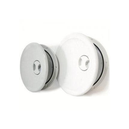 Round Storage access hatches that have a hinged lid which opens a full 180 degrees.