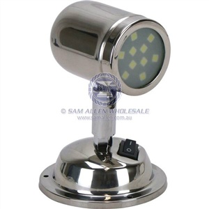 * Ideal for use in all interior marine, caravan, motorhome and camper trailer applications. Most commonly used as a cabin or bunk reading light. 10 x super bright 5050 SMD chip LEDs with a light output comparable to a 15 watt halogen. 120 degree of lighting angle. 2 way switch on/off. Polished stainless steel frame.