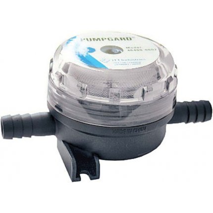 Jabsco inlet strainers protect all electric diaphragm pumps from pump breakdown due to particles in the water. Transparent housing screws off to allow easy inspection and servicing to clear debris.